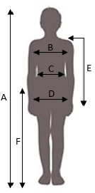 | B | Obvod hrudníka | 49 - 50 | 51 - 52 | 53 - 54 | 55 - 56 | 57 - 58 | 59 - 60 | 61 - 63 | 64 - 65 | 66 - 67 | 68 - 69 | 70 - 73 | 74 - 77 | 78 - 81 | 82 - 85 |