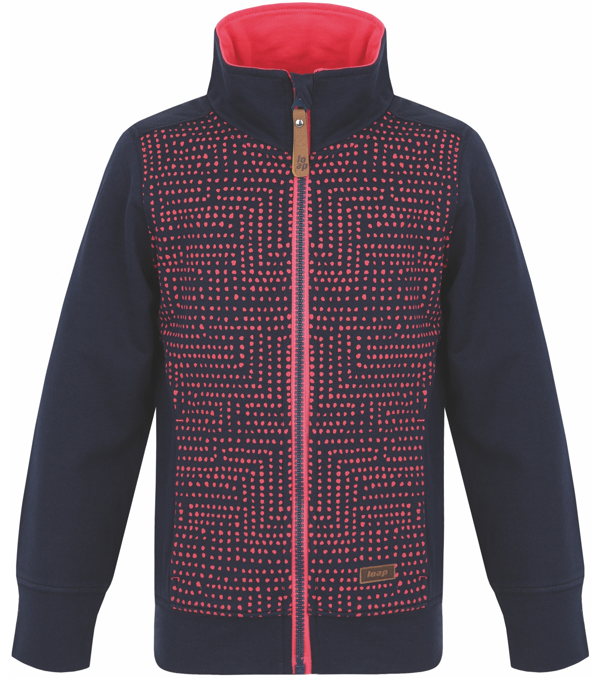 Dievčenská bavlnená mikina na zips Loap DIFENA má klasický strih so stojačikom a dvoma bočnými vreckami. Kostený zips má na hornom konci praktickú krytku, ktorá chráni bradu pred chladom a možným zranením. Prednú stranu tejto dievčenskej mikiny zdobí kvalitná matná potlač, ktorá je príjemná na dotyk. Vášmu dievčatku bude vyhovovať počas celého roka v škole, doma aj vo voľnom čase. Hodí sa k džínsom, legínam aj teplákom. Stojan. Kostený zips s ochranou brady. Dve bočné vrecká. Materiál: 100% bavlna