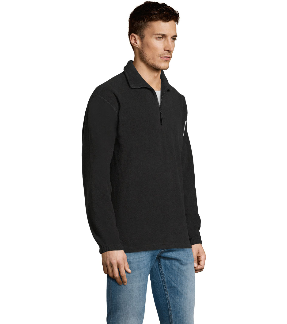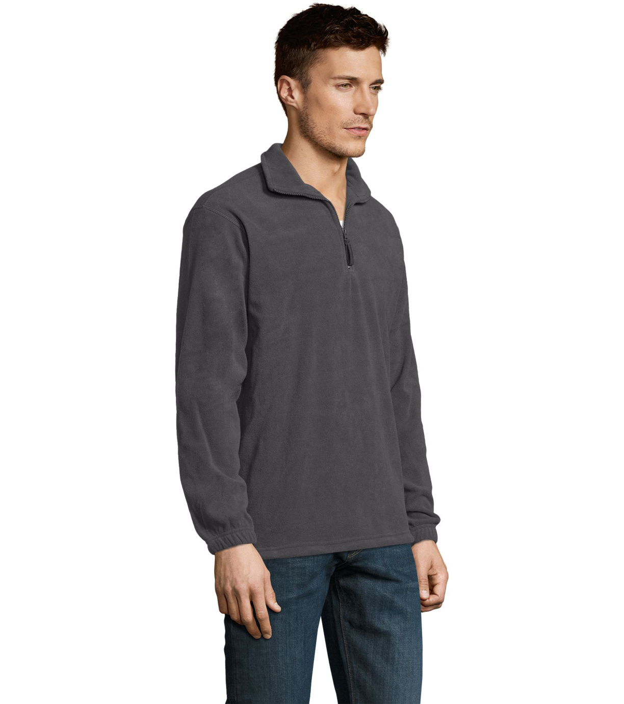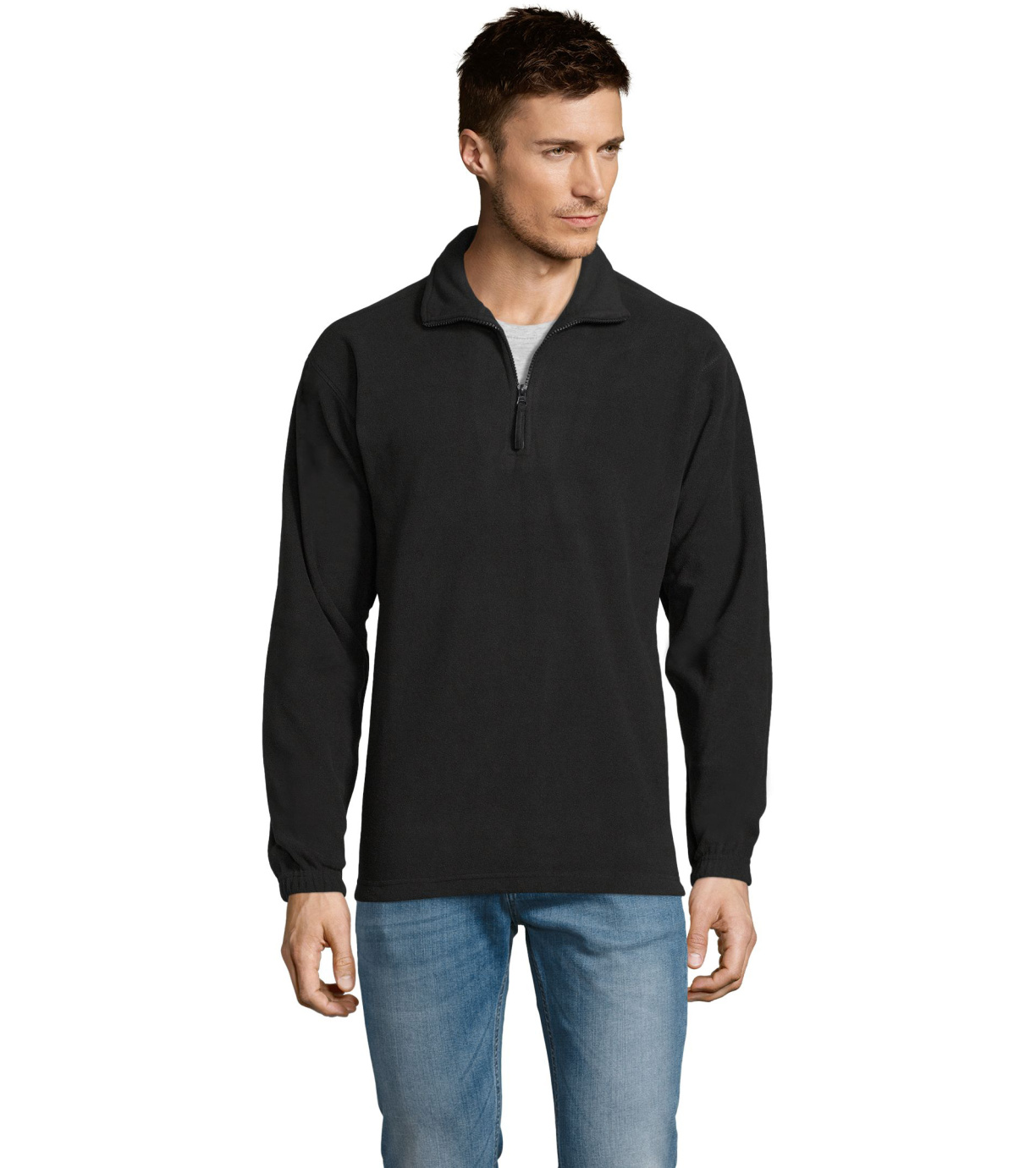Fleecová mikina s vysokým golierom na zips. Rukávy sú zakončené pružnými manžetami. V páse je mikina zakončená pružným lemom.