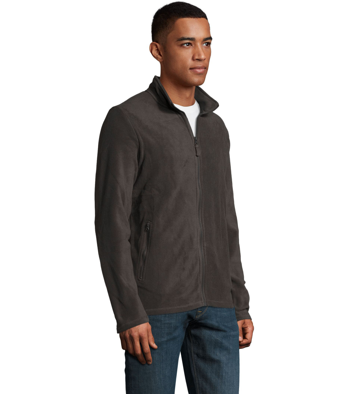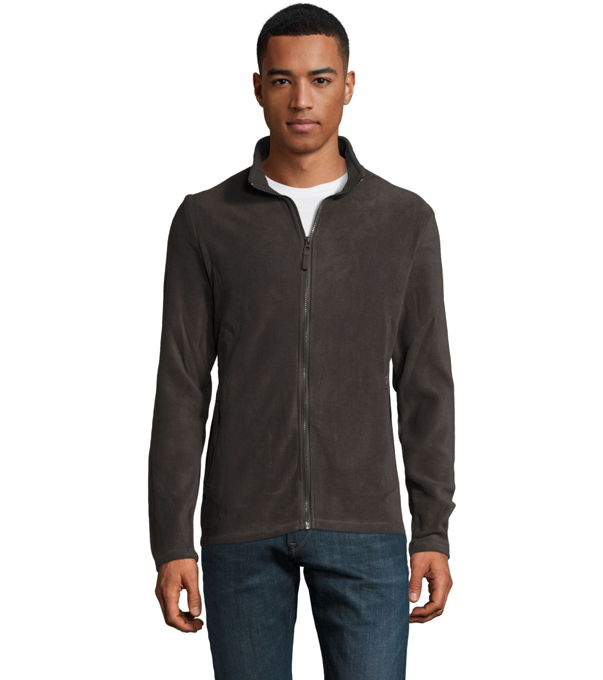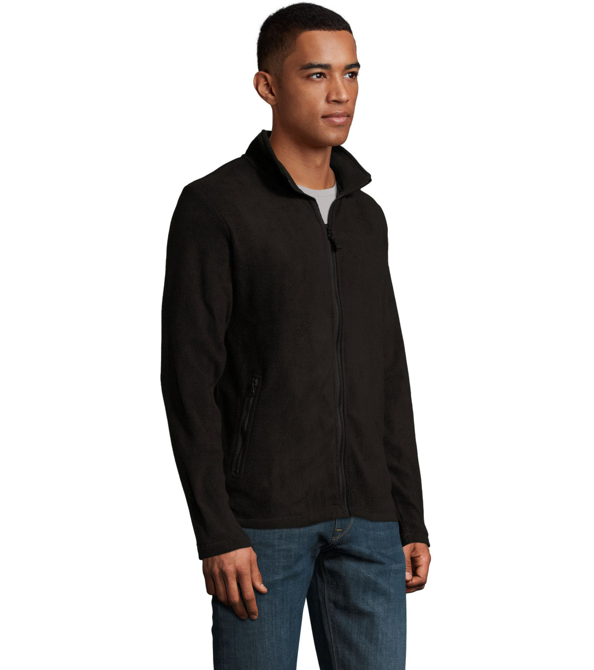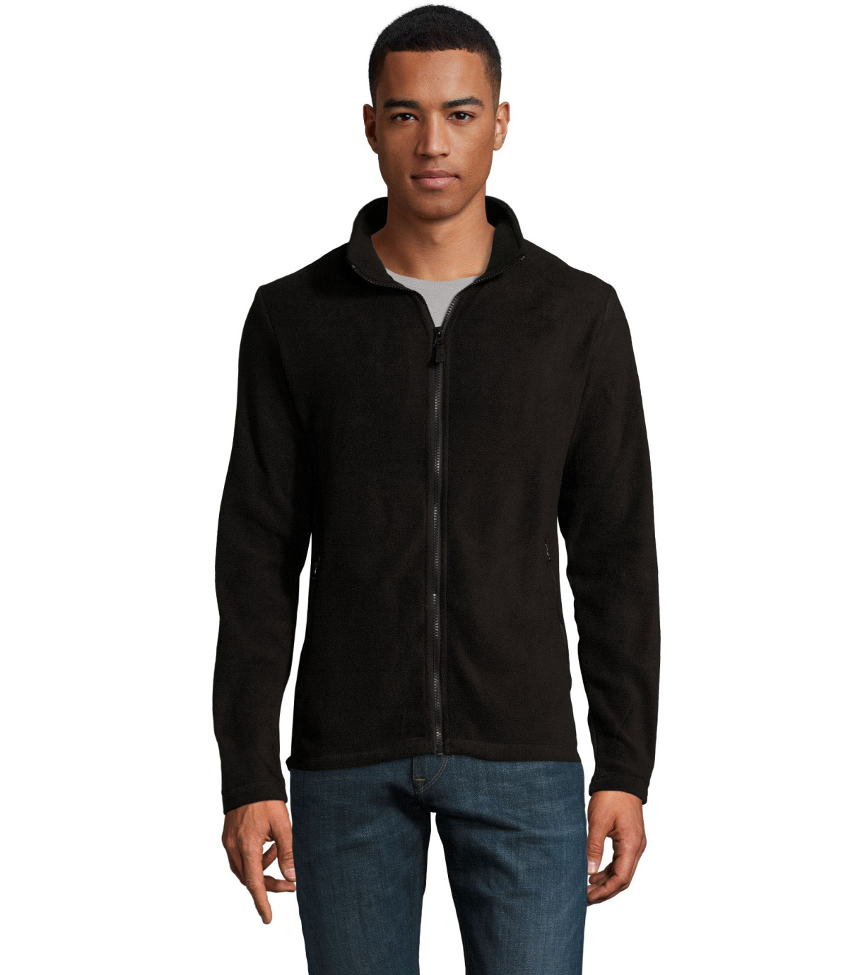 Panská fleecová mikina s golierom na zips. 2 bočné vrecká na zips.
