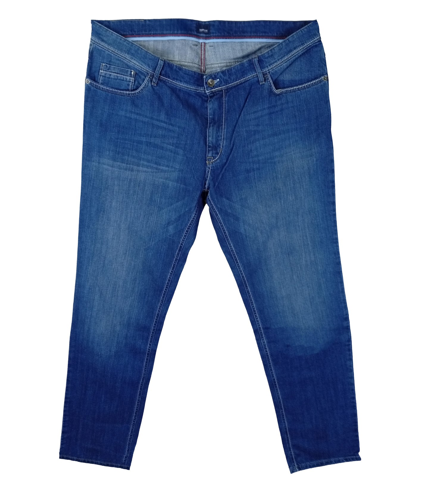 Pánske džínsy Hattric v klasickom modrom prevedení s jemným opraným efektom na stehnách a kolenách. Moderný strih s piatimi vreckami a decentné prešitie zaručuje univerzálny vzhľad vhodný na každodenné nosenie. Vďaka kvalitnému denimu s prímesou elastanu sú nohavice pohodlné a dobre sadnú. Perfektná voľba pre voľný čas aj ležérny pracovný outfit.