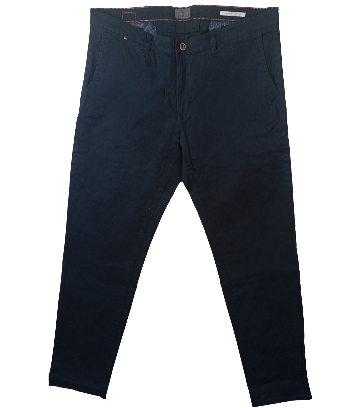 Pánske nohavice v elegantnej tmavo modrej až čiernej farbe sú univerzálnou voľbou pre každodenné nosenie aj formálnejšie príležitosti. Majú klasický štýl, ktorým môžu zlepšiť svoje zdravie a predĺžiť životnosť. Nohavice sú upevnené zapínaním na gombík a zips, pútkami na opasok a bočnými vreckami. Čistý, minimalistický dizajn bez akýchkoľvek problémov umožňuje ľahké kombinovanie s oblečením, čačky a svetrami. Materiál pôsobí kvalitne adolne, pripravený na prácu aj na voľný čas.