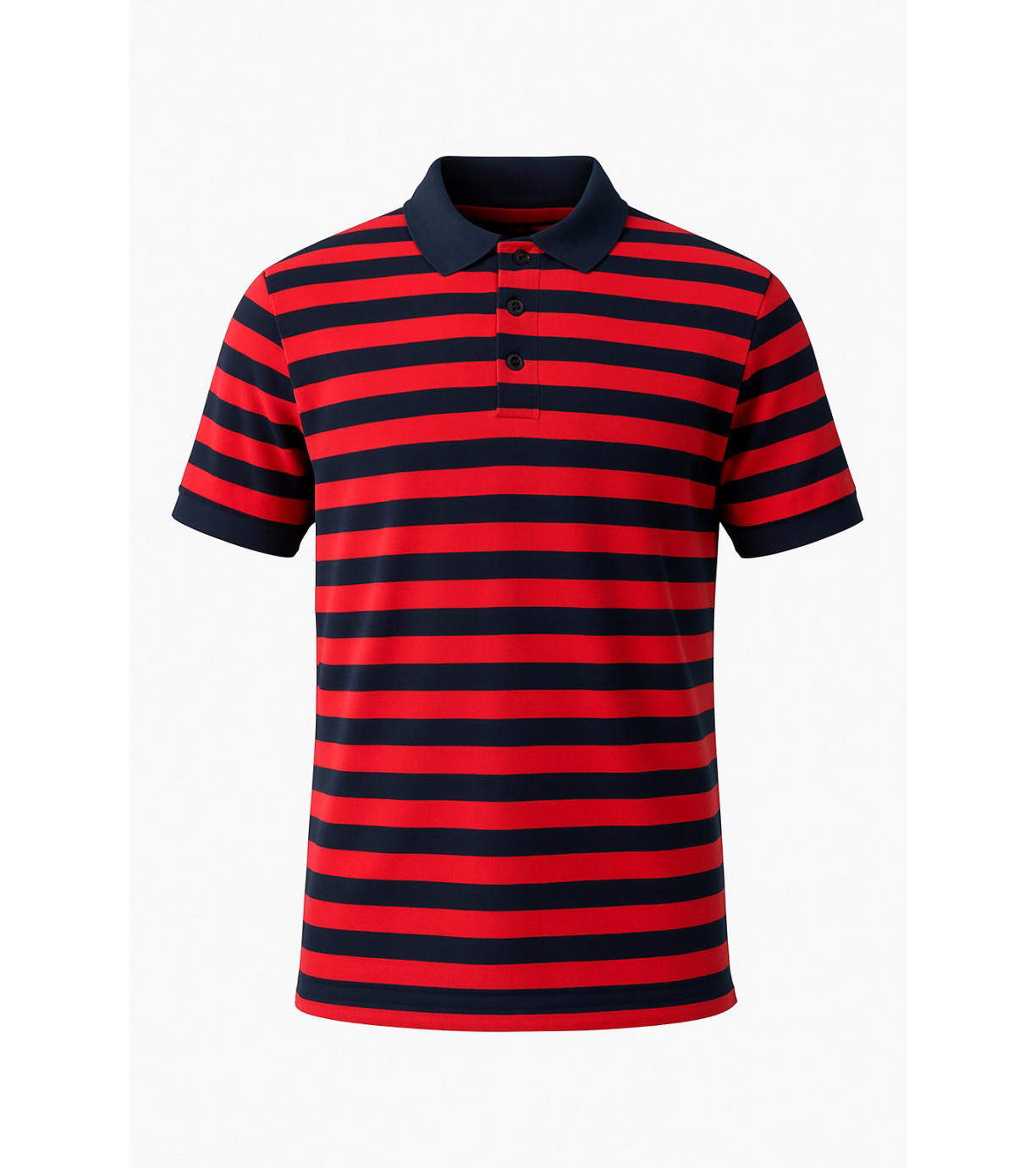 Pánske polo tričko v modernom pruhovanom dizajne v kombinácii červenej a tmavo modrej farby. Vyrobené z kvalitného, príjemného materiálu, ktorý zaisťuje pohodlie po celý deň. Klasický golier so zapínaním na tri gombíky a krátke rukávy dodávajú elegantný športový vzhľad. Ideálne na voľný čas, prácu aj letné dni.