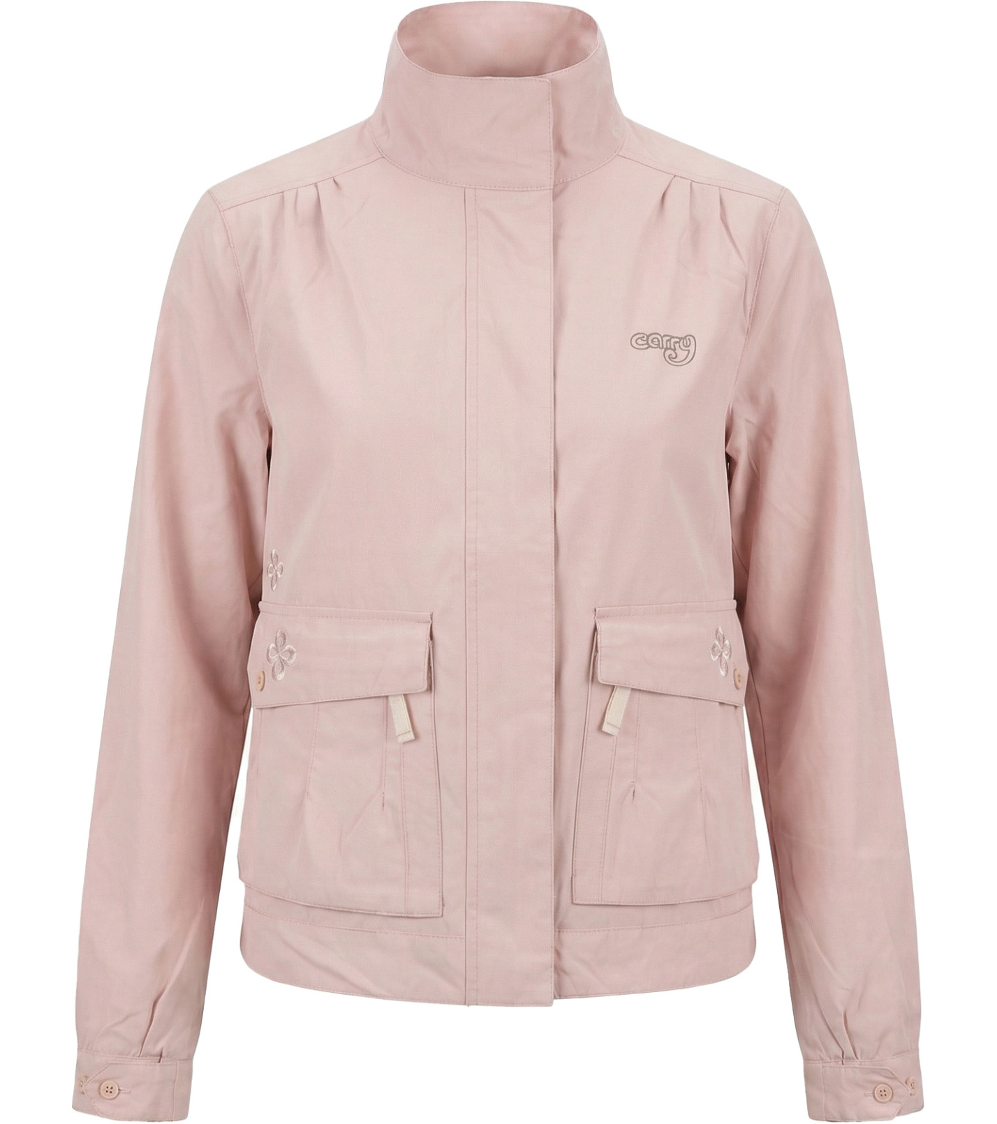 Dámská jarní bunda s podšívkou vás zahřeje, když tričko nebude stačit. Zapínání na zip a druky, ozdobná výšivka, stojáček, 2 nakládané kapsy se zapínáním na knoflíky a na zip