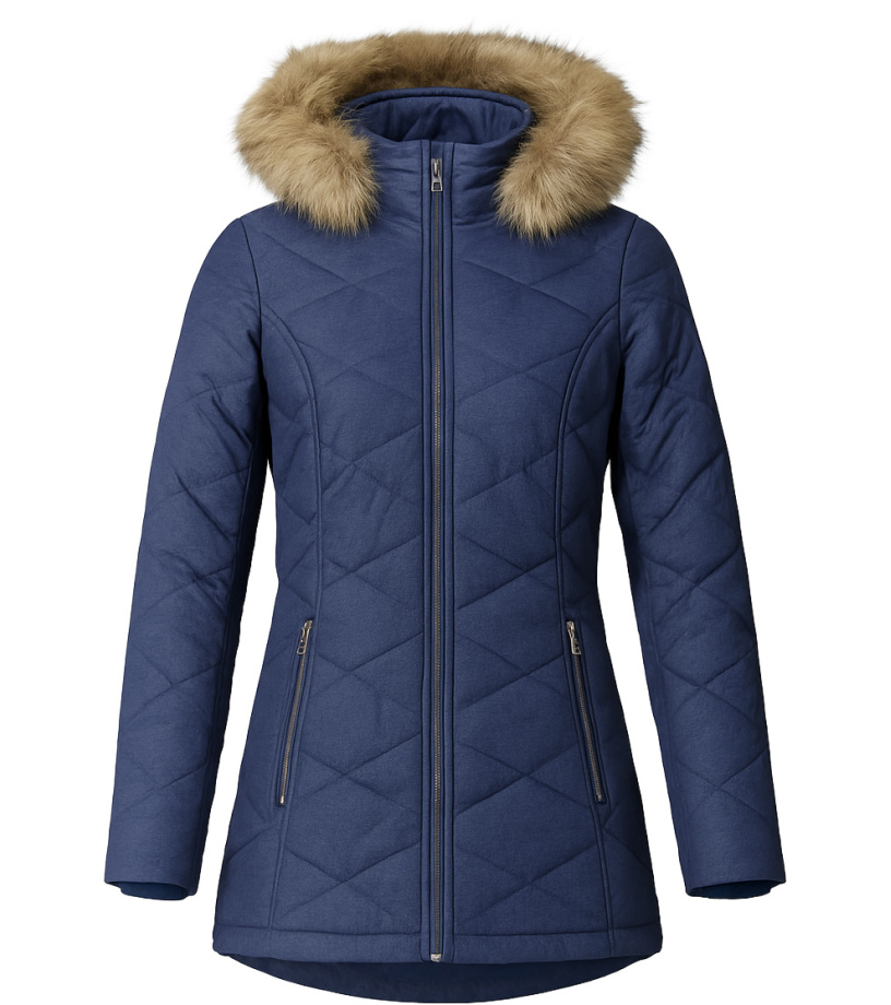 Dámska zimná prešívaná bunda v elegantnom strihu s kapucňou lemovanou umelou kožušinou. Kvalitná hrejivá výplň a vyšší golier poskytujú vynikajúci tepelný komfort aj v mrazivom počasí. Prešívaný vzor dodáva bunde moderný vzhľad, zatiaľ čo praktické vrecká na zips zaisťujú funkčnosť. Ideálne na každodenné nosenie aj zimné prechádzky.