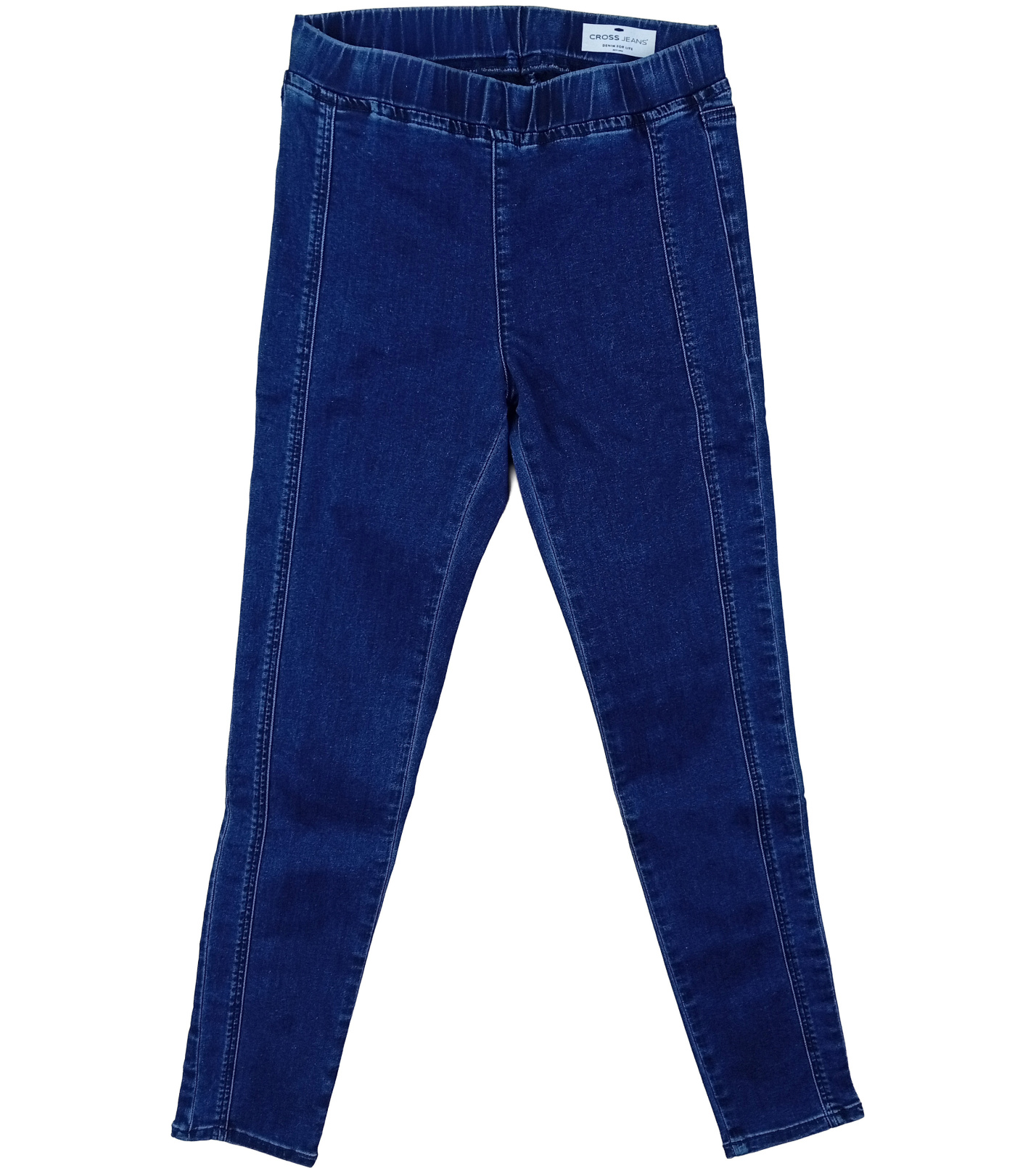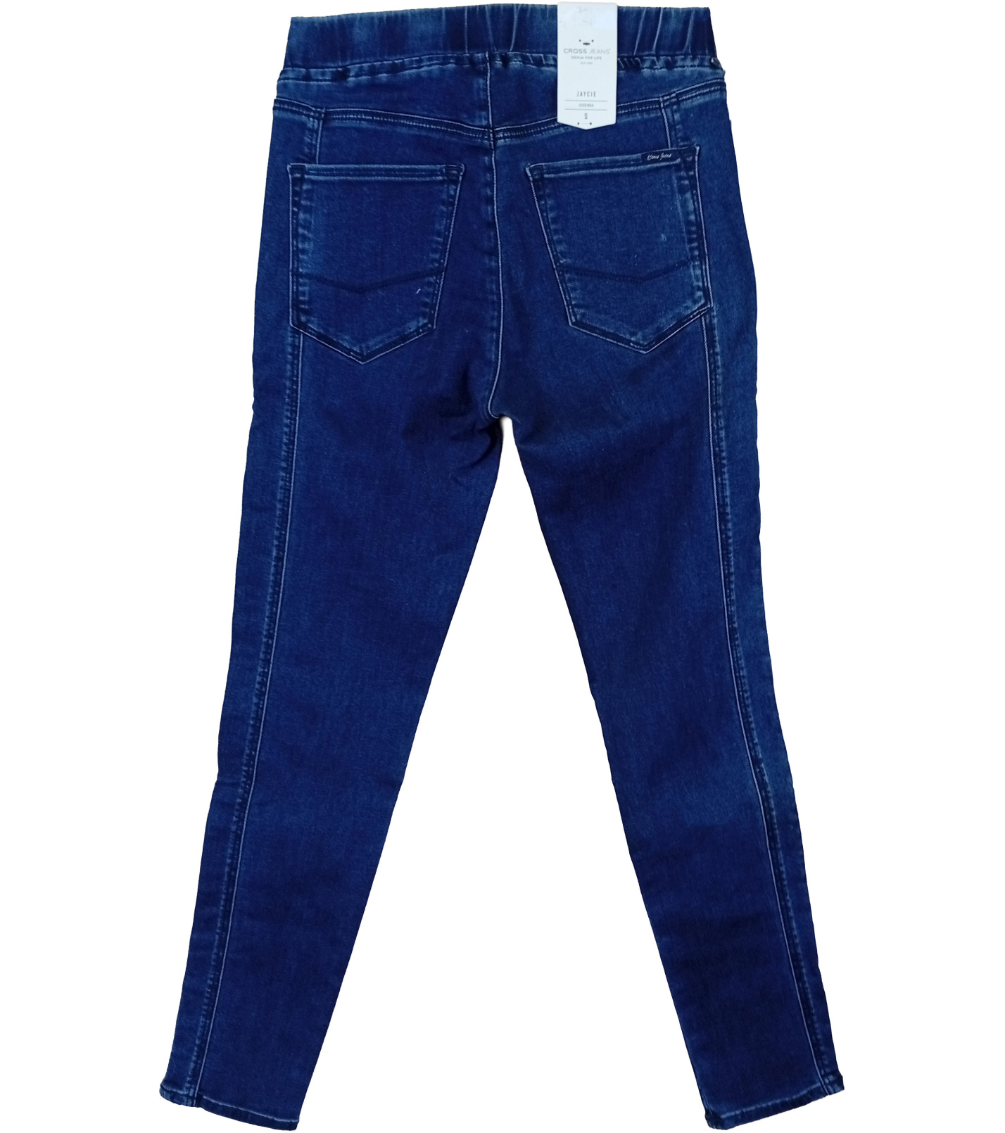 Dámske džegíny Cross kombinujú pohodlie legín a vzhľad tradičného denimu. Majú elastický pás bez gombíkov či zipsu, čo poskytuje maximálny komfort pri nosení, a úzky strih nôh (skinny fit), ktorý pekne tvaruje siluetu. Ich tmavo modrá farba je elegantná, ľahko sa zladí s výšivkou, svetrom alebo košeľou - ideálna pre voľnočasové outfity aj mierne formálnejšie príležitosti.