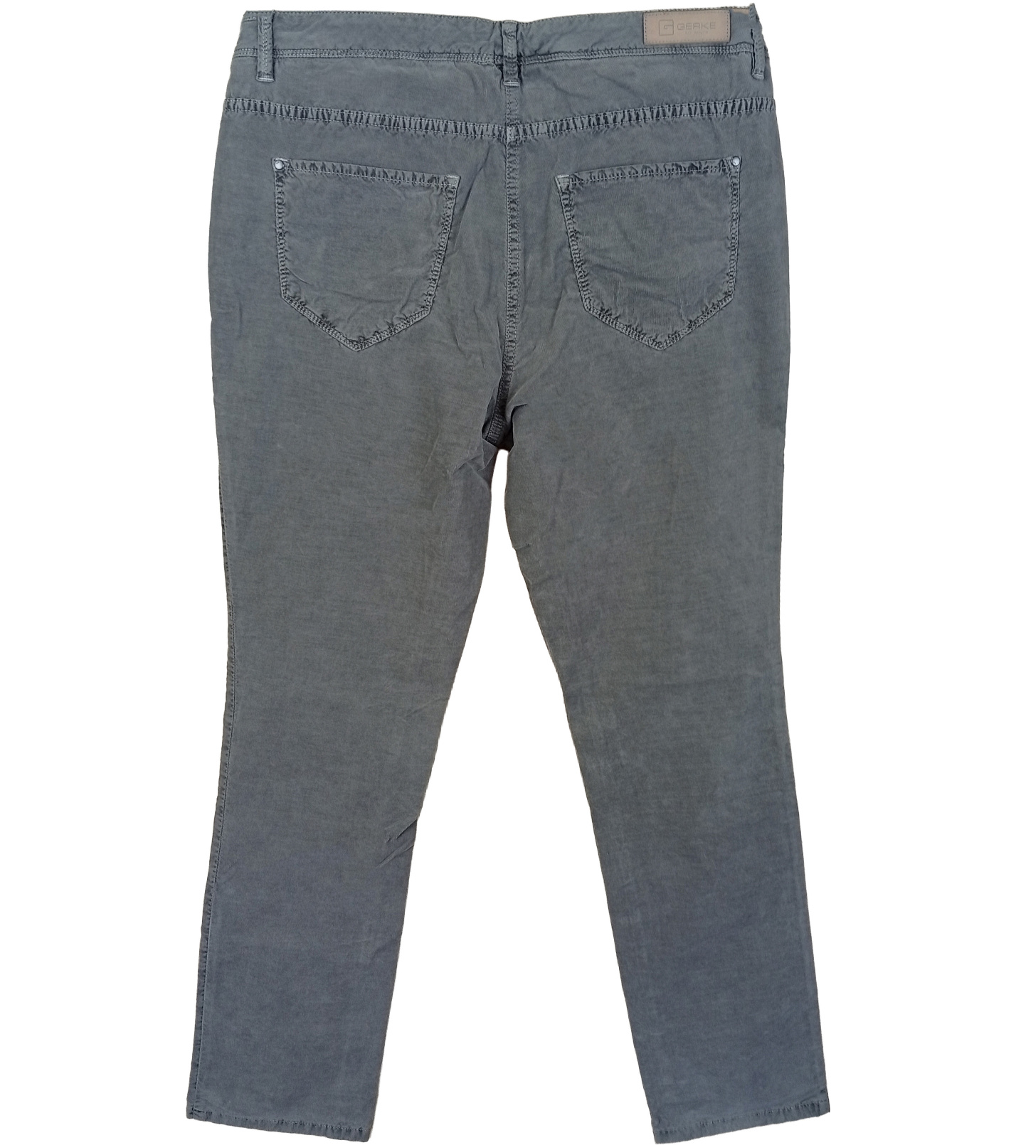 Dámske nohavice Gerke sú ušité z ľahkého bavlneného materiálu s prímesou elastanu, ktorý zaisťuje pohodlné nosenie a voľnosť pohybu. Majú klasické zapínanie na zips a gombík, pútka na opasok a päť vreciek. Zadné vrecká sú zdobené jemným prešitím. Vďaka svojmu jednoduchému dizajnu a ležérnemu vzhľadu sa hodí ako na voľný čas, tak aj na ležérnejší pracovný outfit.