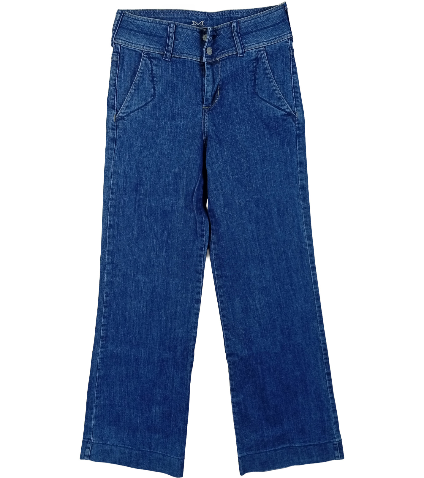 Dámske džínsy v klasickej modrej farbe sú nadčasovým a univerzálnym kúskom do každého šatníka. Majú rovnejší strih s ľahko rozšírenými nohavicami, ktorý pôsobí elegantne a zároveň pohodlne pri nosení. Nohavice sú vybavené zapínaním na gombíky, pútkami na opasok a praktickými vreckami. Vďaka jednoduchému dizajnu sa džínsy ľahko kombinujú s tričkami, košeľami aj svetrami - hodí sa ako do mesta, tak na voľný čas.
