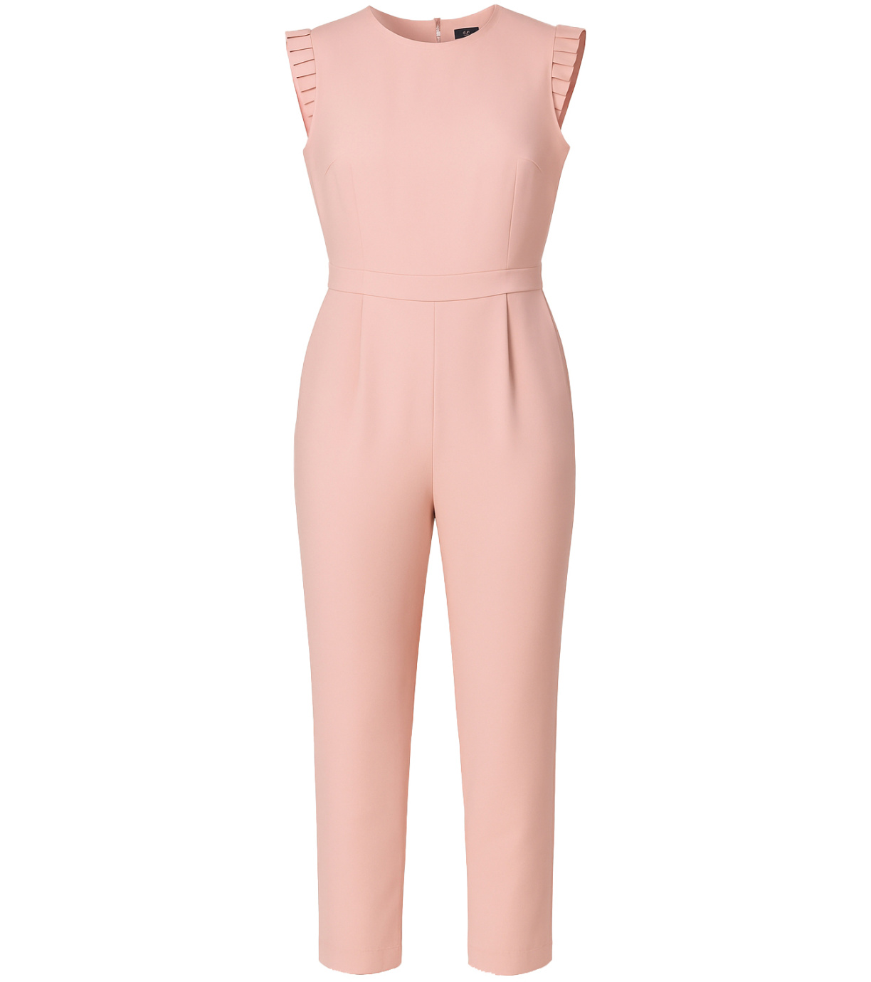 Dámsky overal bez rukávov. Švy na prednej a zadnej strane. V páse je elegantný pruh, ktorý rozdeľuje hornú a dolnú časť. Kombinéza má dve vrecká a zapínanie na zips na zadnej strane.