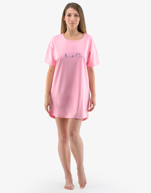 Základom dobrého spánku je vaše pohodlie a pohodlná nočná bielizeň vám ho pomôže dosiahnuť. Náš dámsky maxi top je ideálnou voľbou pre každú milovníčku voľných strihov a kvalitných materiálov. Moderný maxi top s potlačou na hrudi je vyrobený zo 100 % bavlneného úpletu, vďaka ktorému sa vám bude spať ako vo sne.