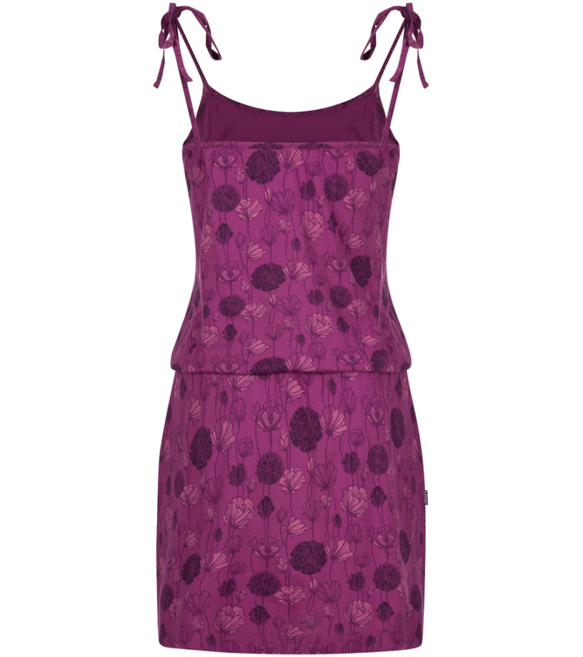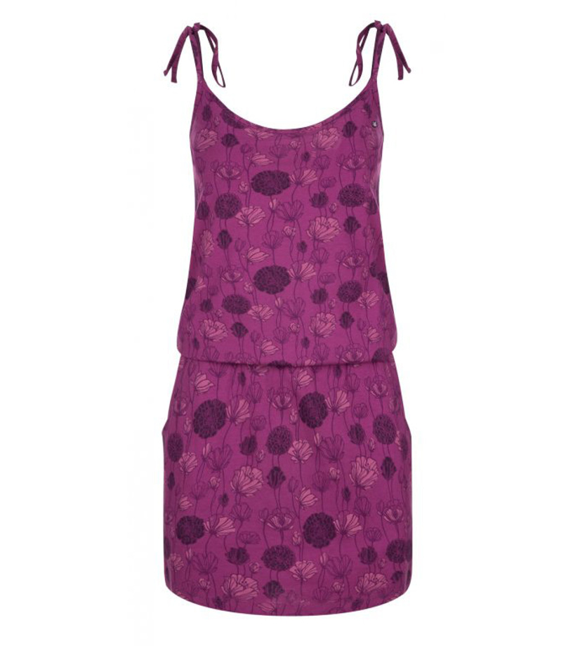 Dámske letné šaty BAJA majú tenké ramienka, elastický pás a dve vrecká. Materiál: 100% bavlna