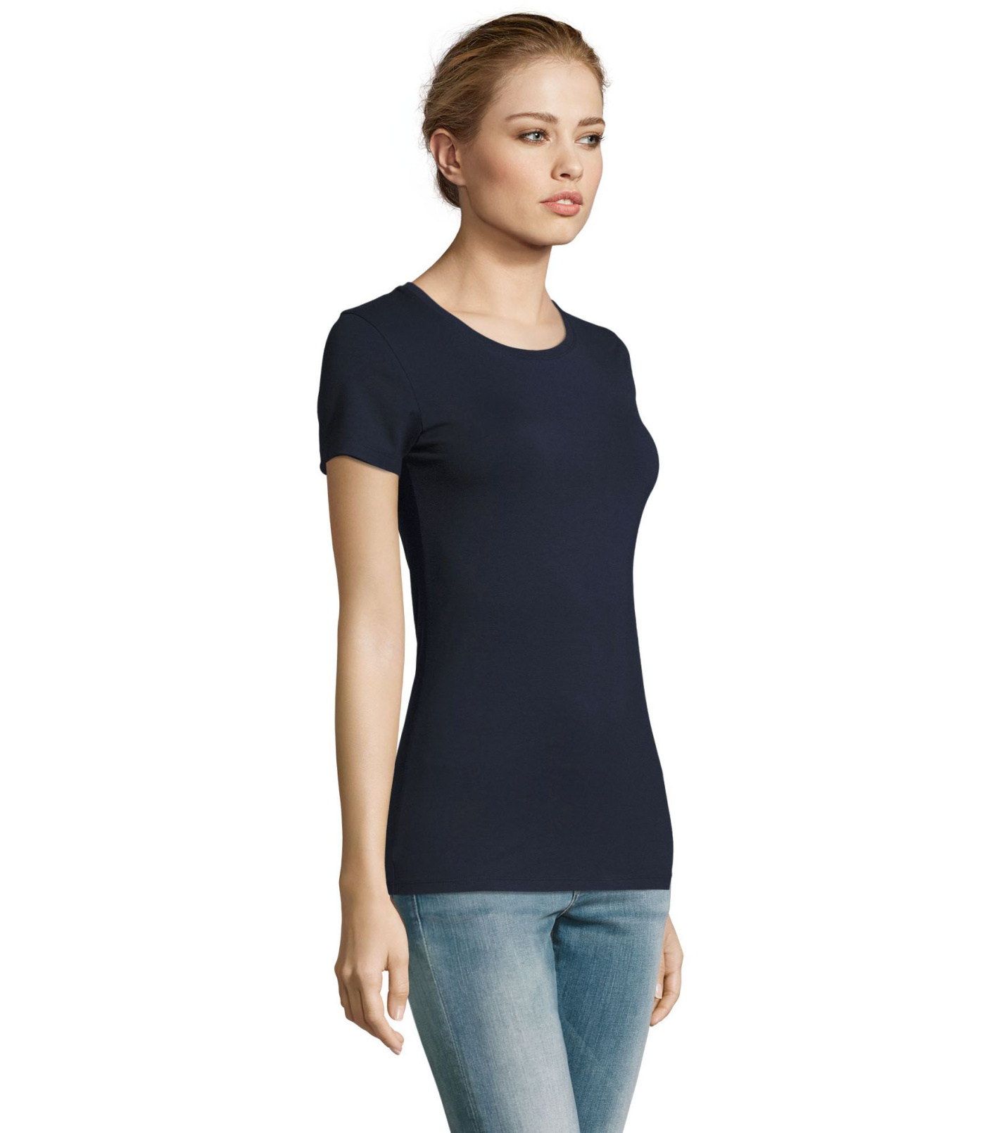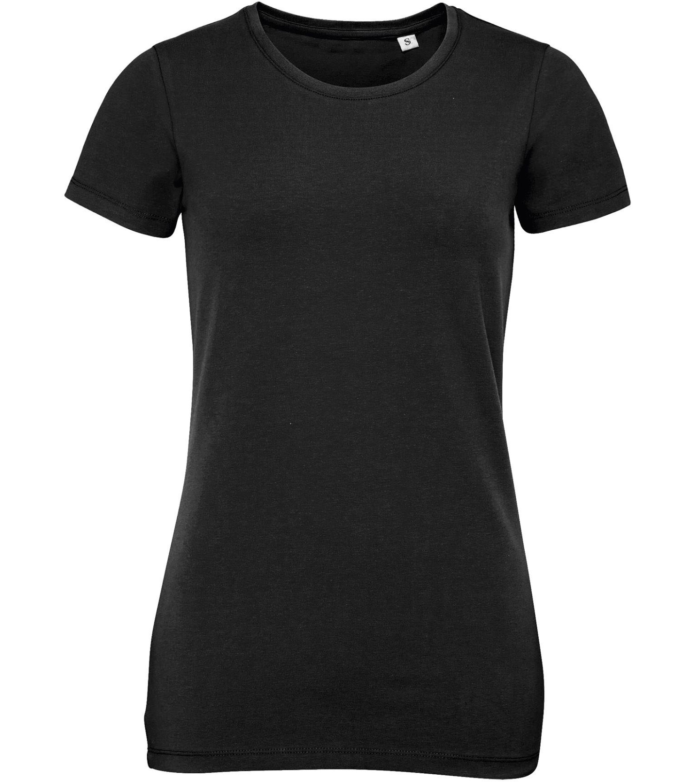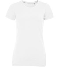 Dámske tričko priliehavého strihu s bočnými švami, okrúhlym výstrihom a rebrovaným golierom z elastanu.