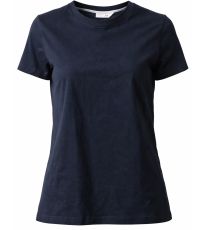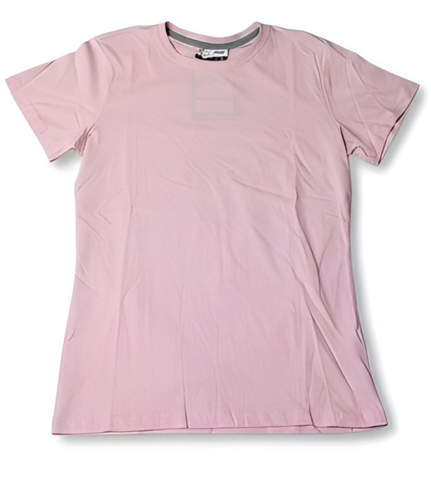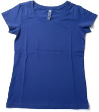 Dámske tričko s krátkym rukávom a okrúhlym výstrihom, 1,5 cm pružný rebrovaný lem zo zmesi spandex pri krku s vrchným prešívaním na prednej strane, farebne kontrastná vystužovacia páska od ramena k ramenu viditeľná na golieri, pružné švy, postranné zošitie.